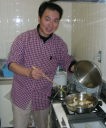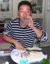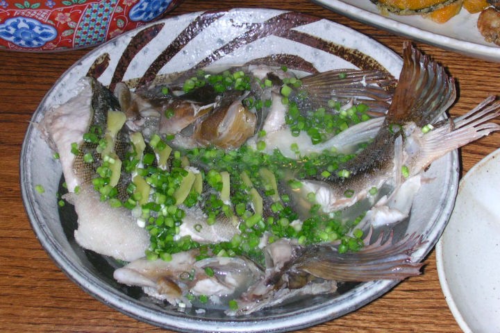アイナメの蒸しものと刺身、黒鯛の刺身。 シェフはこの二人。 あっという間にたいらげてしまいました。