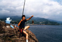 真鶴の釣り場は、崖を降りて絶壁の様な高い場所からの釣りでした。
