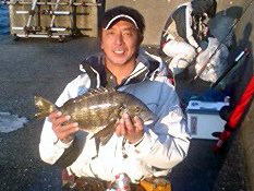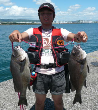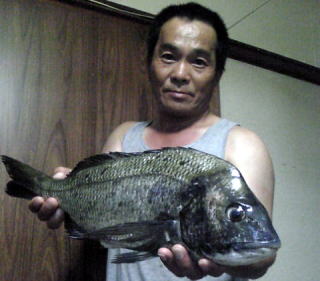 入会希望の光川さんは45cmオーバーのチヌと真鯛