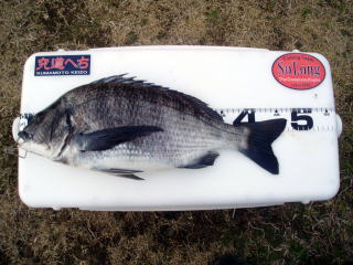 宮崎に帰ってきて今好調の港に夕方いって47の黒鯛を