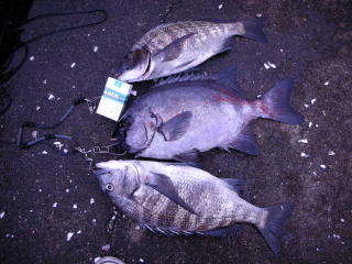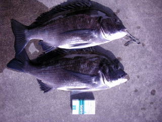 チヌは年無しに届かず47cmでしたが石鯛は2kgありました。