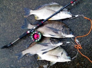 友人が湾奥の護岸でキビレを1枚、おいらがOTで黒鯛3枚