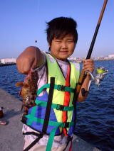 6:00の船で渡り、田中親子は低いパイプ根本でカサゴ狙い、大用氏は平