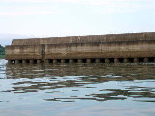 ケーソンの継ぎ目に竿を突っ込んで、何かを喰わせた様である。