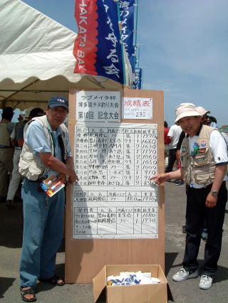 最初、高いパイプを狙ったが反応はなく、竹内さんと大会の写真撮影を開始
