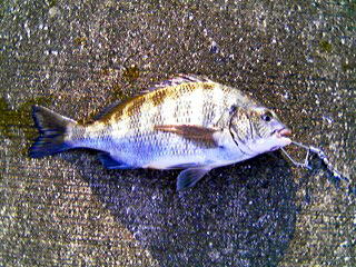引きを楽しんで水面に浮いてきたのは黒鯛だった。