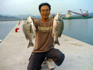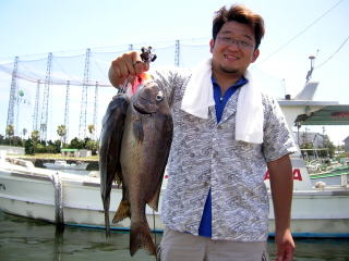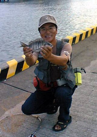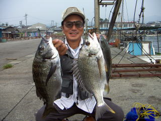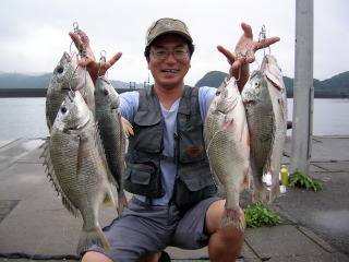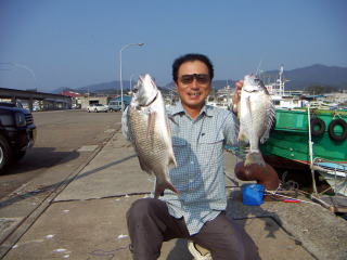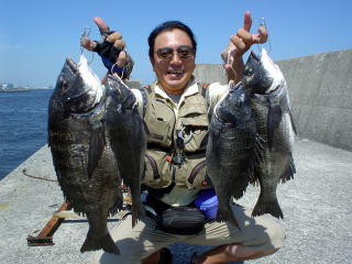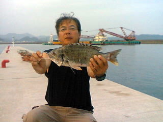 そして、先端でメジナ、シマダイを狙っていた増子さんが何と黒鯛を1枚あげていた。