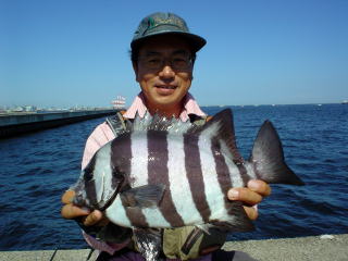 34cm、体厚のあるシマダイだった。