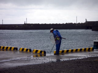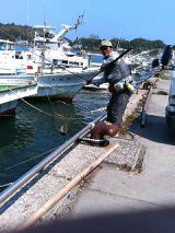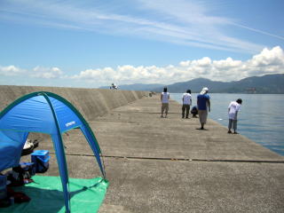 門川に到着後、私は漁港前(コの字奥)、長友さんは反対側の小堤防側を