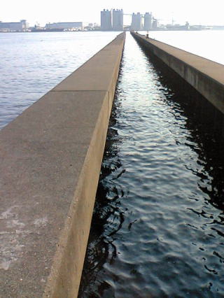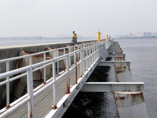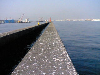 まずは外側の堤防、先端側はパイプの様で潮が通っている。