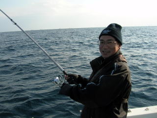沖の瀬に到着後、同行した伊豆さん(長友さんの友人)が立続けに40cm以