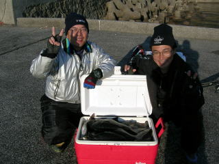 鈴木さんは、台船の間でアタリがあるらしく粘っていたが、なかなかGetでき