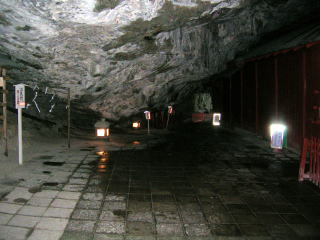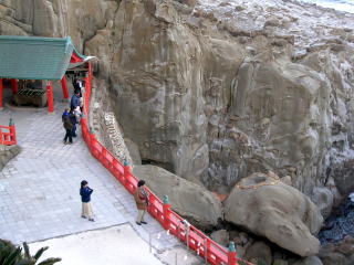 海岸沿いの崖に面した道を通ると、たどりついたのは洞窟内にある神宮だっ