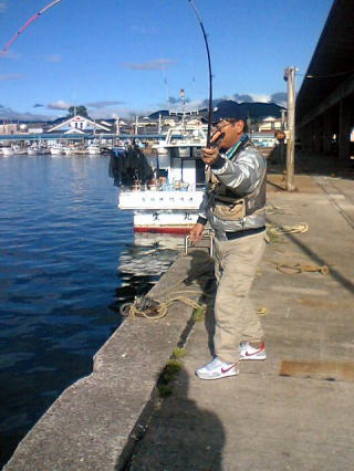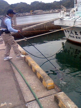2日の早朝に土々呂へ移動し、カツオ船付近で1枚Get! 40cm程度。
