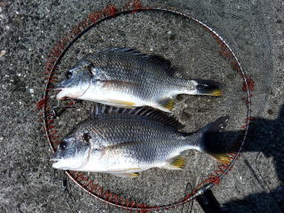 体が黄色がかった居付きの黒鯛、方も大きそう。