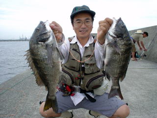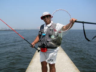 特にパイプ堤防は、足下から潮が噴き出て落とし辛い。