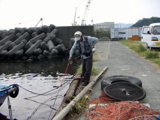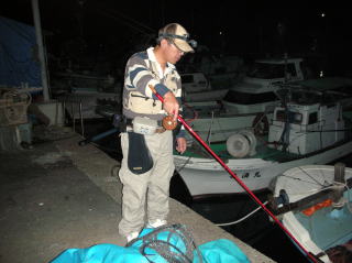 休憩後、門川港に移動して仮眠後、早朝、カニ取りに向かった。