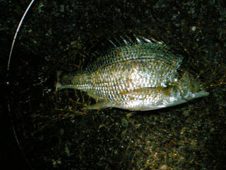 比較的浅タナで糸が止まり、フグかと思いきや、塩焼きサイズ。