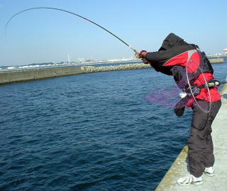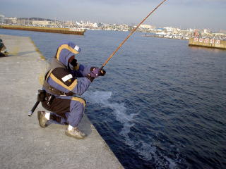 カッパを取りに駐車場まで戻り、再び開始、オキアミを餌に沖に投げ込んだ時、