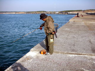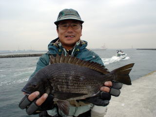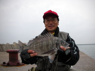 堤防全体でも黒鯛は姿を見せず静かな状態だったが、そこへ、のそのそとや