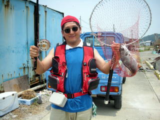 途中の釣具屋さん(大王)で親切なご主人と子供さんに魚拓をとってもらった。