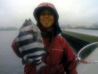 2時頃に現地に到着し33cmの小型を釣った所で雨が降ってきた。