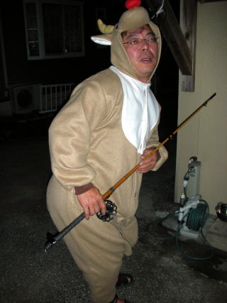 今回は負けた方がトナカイの着ぐるみを着て写真を撮られ、それを年賀状に