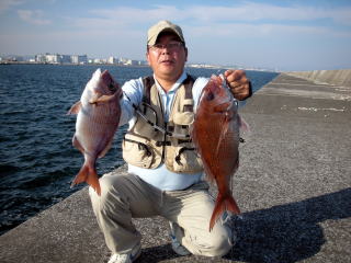 右から左への潮が速く、また、同じ方向の強風で底がなかなかとれない。