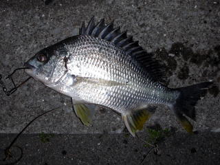 その後、駐車場前でキビレの37cm、33cmを追加して終了した。