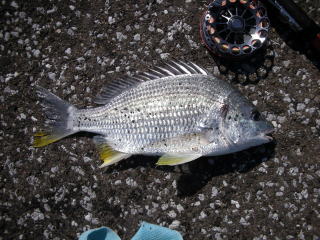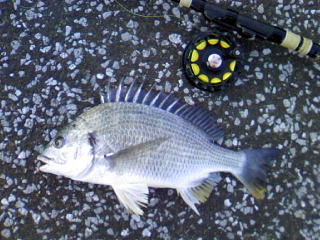 夕方から再び第三ポイントを狙ったが、これまた34cmのキビレのみで日没