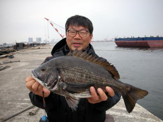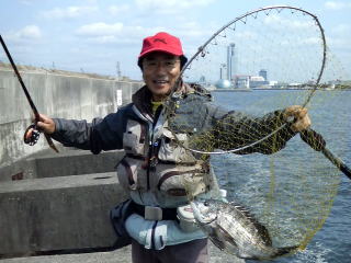 その後、粘ったが私にアタリはなく、結局、神崎さんが今年初のキビレをGetし