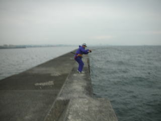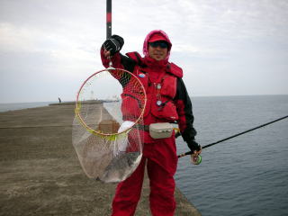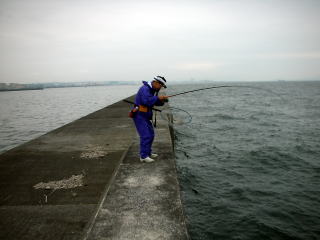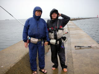 高い堤防なので私は恐る恐る竿をだしていたが、天気予報も外れてかなり強