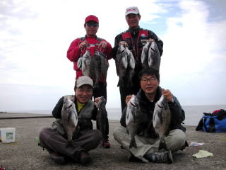雨が止んだところで再開、私は右側の奥で38cmのキビレをGet