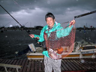 雨の中で取り込んだのは、本日、唯一の本命38cmの黒鯛だった。