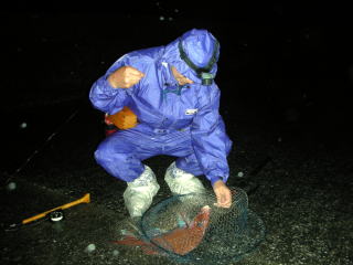 ヘッドライトで照らしながら仕掛けを作って明るくなるのを待った。