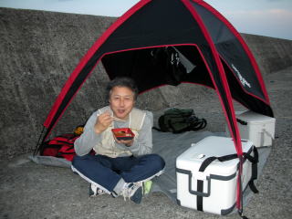 朝一番の船で堤防に上がり、29時間釣行が始まった。