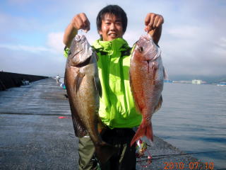 神崎妻:コロダイ1枚(40cm)、ハタ1本(36cm)