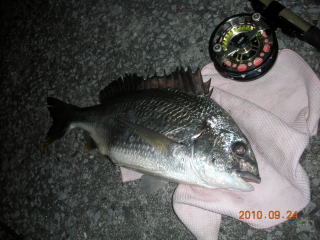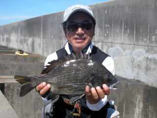ちょっと疲れたので基地に戻ってみると、佐藤さんが黒鯛をGetしていた。