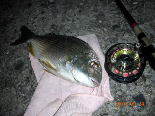 一旦、基地に戻り朝食をとってから、帰り間際に餌をミドリに変えて黒鯛を狙っ