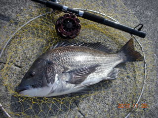 ずっしりとした感触と黒鯛独特の心地良い引きが伝わってきた。