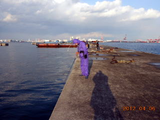 基地に戻る途中で、台船の隙間に落とすと、着底間際に糸が微かに震えたの