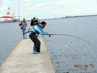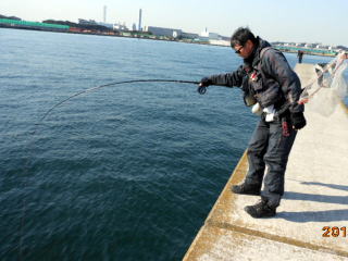 魚は掛かったが、はしらの裏側に突進されたので、柱に擦れない様、気を配り