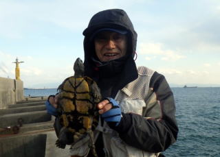 佐々木さんが1枚と亀!
