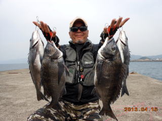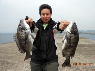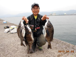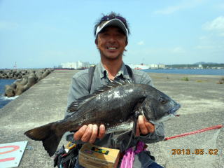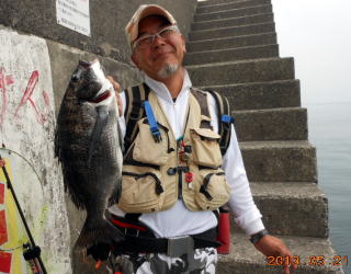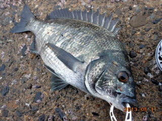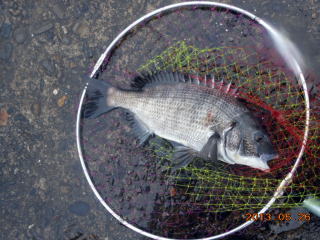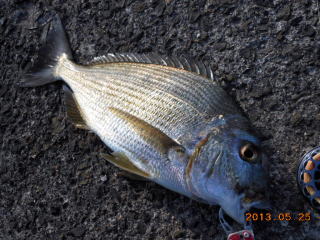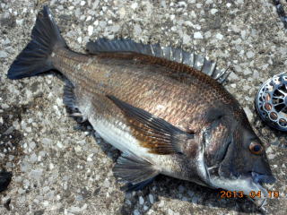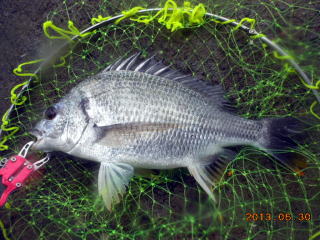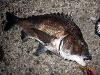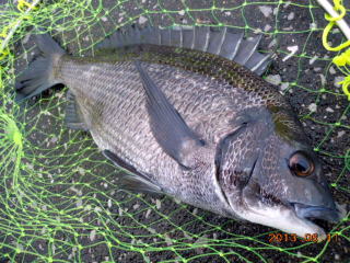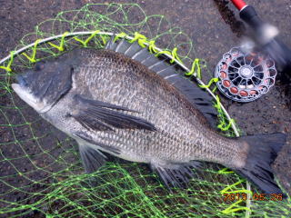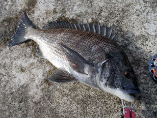 ルを巻き取ってタモに入れた。39cmの黒鯛だった。