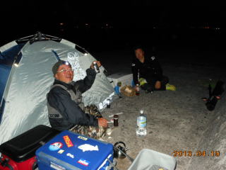 長友氏は既に焼酎を飲んでテントで大いびき。