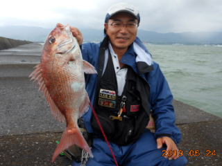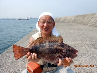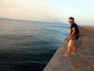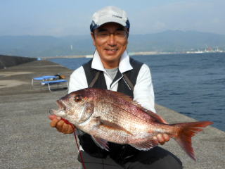 再開後、土々呂方面に行き船の横に餌を落とすとコツンというアタリで、うりゃ〜!