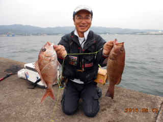 暗くなってから直ぐに夜仕掛けに変更して真鯛を狙う。