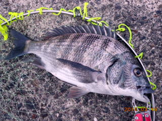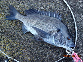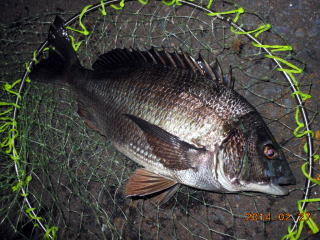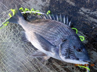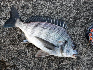 まずまずの手応えで引き味を楽しみ取り込んだのは45cmの黒鯛だった。
