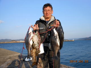その後もポツポツとアタリがあり、お昼の船で先に帰る上田さん(3枚)とYKNさ