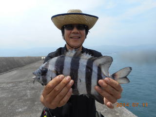 私が黒鯛1枚と真鯛1枚とコロダイ1枚、佐々木さんは魚ではなく足がつって